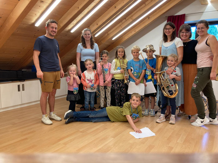 Auch in diesem Jahr hat die Schlossmusik beim Schonstetter Ferienprogramm wieder eine Aktion angeboten. Viele kleine und größere Kinder machten mit bei der "Musik-Rallye" mit verschiedenen Spielen, Geschicklichkeitsübungen und sportlichen Aktivitäten rund um das Thema "Musik". Natürlich durften auch noch die verschiedenen Instrumente der traditionellen Blasmusik ausprobiert werden, ehe der kurzweilige Vormittag mit einem gemeinsamen Hot-Dog Essen endete. Wir hoffen, dass diese Stunden den Kindern in schöner Erinnerung bleiben.